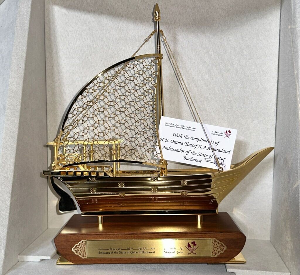 E.S. Osama A.A. Alqaradawi a prezentant un cadou simbolic sub forma unui vaporaș aurit numit Fath al-Khair, prezent în emblema statului Qatar, care doreste sa aducă bunătate, reprezintă steagul Qatarului fluturând pe mări și inspiră mandrie, onoare și apartenență la națiune.