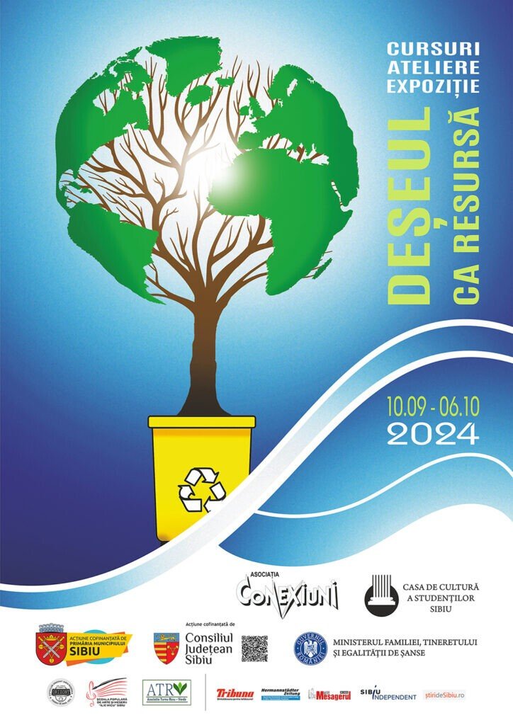 Casa de Cultură a Studenților din Sibiu și Asociația Conexiuni au plăcerea de a vă invita la vernisajul expoziției „Deșeul ca Resursă”, ce va avea loc vineri, 4 octombrie 2024, la ora 12:00, la sediul instituției. Acest eveniment inovator este rezultatul unui proiect desfășurat pe parcursul lunii septembrie, proiect care a adus în prim-plan creativitatea tinerilor din Sibiu, elevi și studenți, ce și-au demonstrat abilitățile de a transforma deșeurile în resurse valoroase.