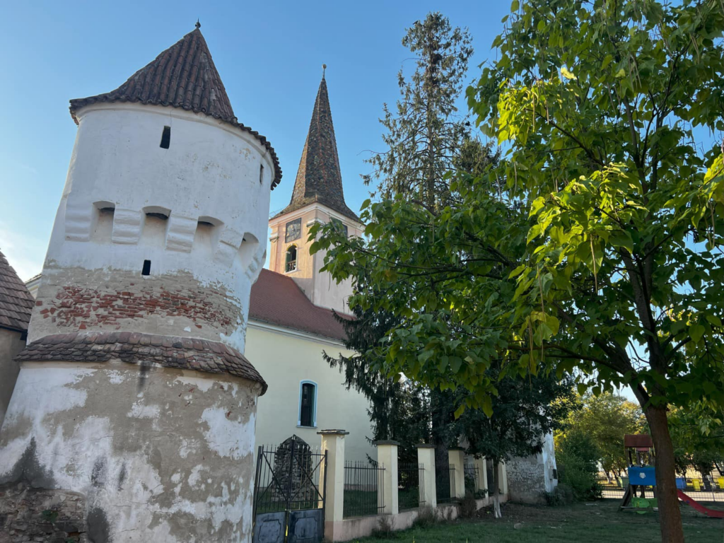 În fața Bisericii Evanghelice, al cărui turn este unic în zona Transilvaniei datorită formei de con elicoidal, se află profesorul Achim Mihuleț, fost director al școlii din localitate, în prezent pensionar și ghid voluntar. O viață întreagă le-a vorbit elevilor săi despre istoria poporului român și cunoaște ca-n palmă biserica devenită monument istoric.