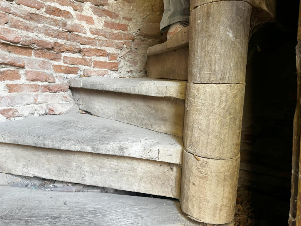 Treptele turnului sunt a doua oprire în turul oferit de Achim Mihuleț: „Fiecare treaptă este realizată dintr-o singură bucată masivă de stejar. Sunt solide și au fost prinse pe un singur ax, care urcă până la ceasul elvețian din turn, fabricat la 1900, în Berna”.