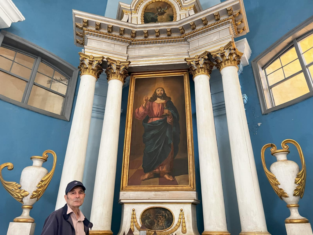 „Tabloul a fost executat în 1816, de către Neuhauser, poate cel mai important pictor din Transilvania acelor vremuri. Este o lucrare frumoasă, care atrage privirile atât prin dimensiuni, cât și prin expresivitate”, spune dascălul-ghid, arătând spre lucrarea în care Isus ține un potir în mână.