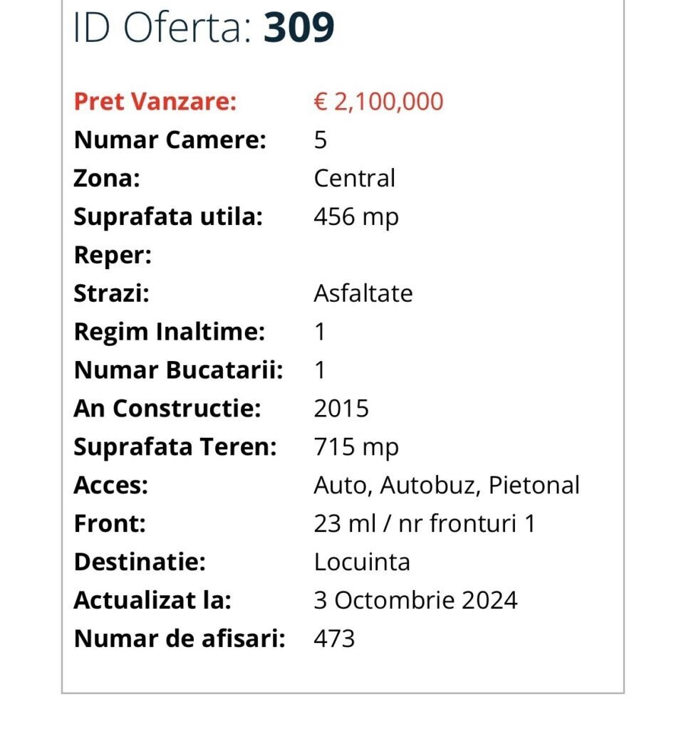 Pe agenția imobiliară, vila este prezentată cu următoarele dotări și beneficii