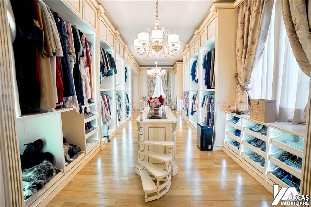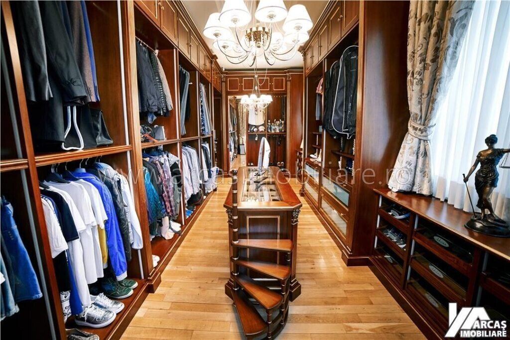 -Etaj: dormitor matrimonial cu dressing si iesire la terasa, dormitor matrimonial cu dressing, birou, spalatorie cu acces la terasa, baie spatioasa iesire la terasa si baie de serviciu.