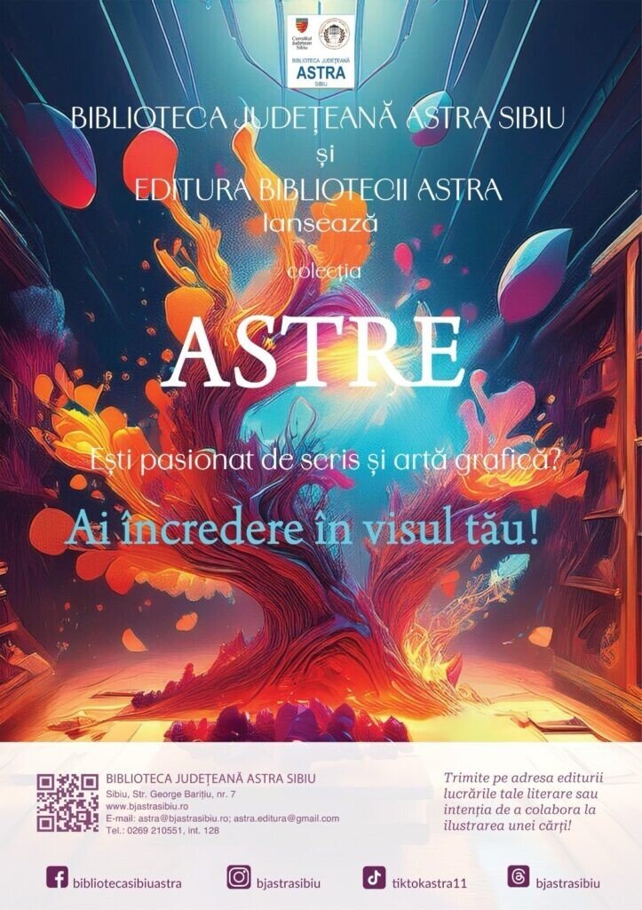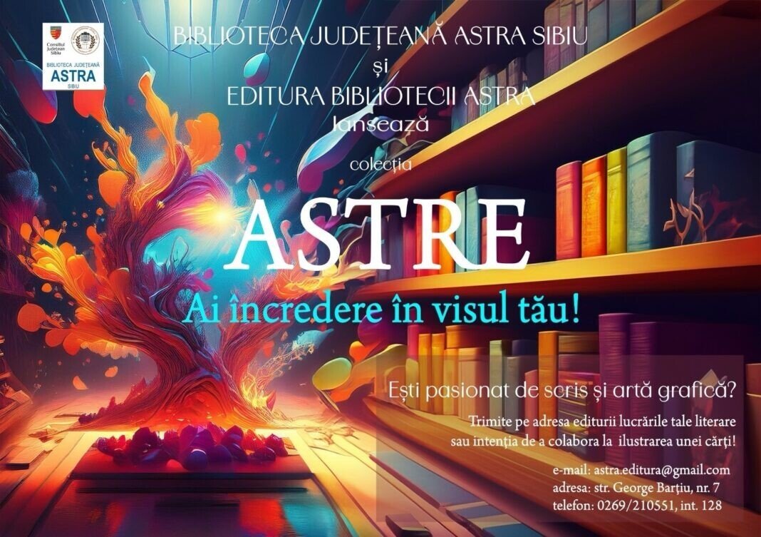 Colecția „ASTRE” își propune să devină un spațiu de afirmare pentru elevii înzestrați din clasele gimnaziale și liceale, oferindu-le posibilitatea de a-și transforma creațiile literare și grafice în opere publicate. Copiii și adolescenții pasionați de scris sunt invitați să trimită lucrări originale – proză, poezie, piese de teatru sau alte genuri literare –, iar cei cu înclinații artistice, precum pictura, grafica sau desenul, au ocazia de a contribui cu ilustrații pentru volumele din colecție. Demersul are scopul de a oferi tinerilor o șansă concretă de a-și vedea munca publicată, dându-le astfel încredere în propriile capacități. În plus, inițiativa dorește să promoveze o experiență practică valoroasă în lumea cărților și să consolideze legăturadintre reprezentanții tinerei generații și biblioteca publicăsibiană, instituție care se bucură de susținerea Consiliului Județean Sibiu.