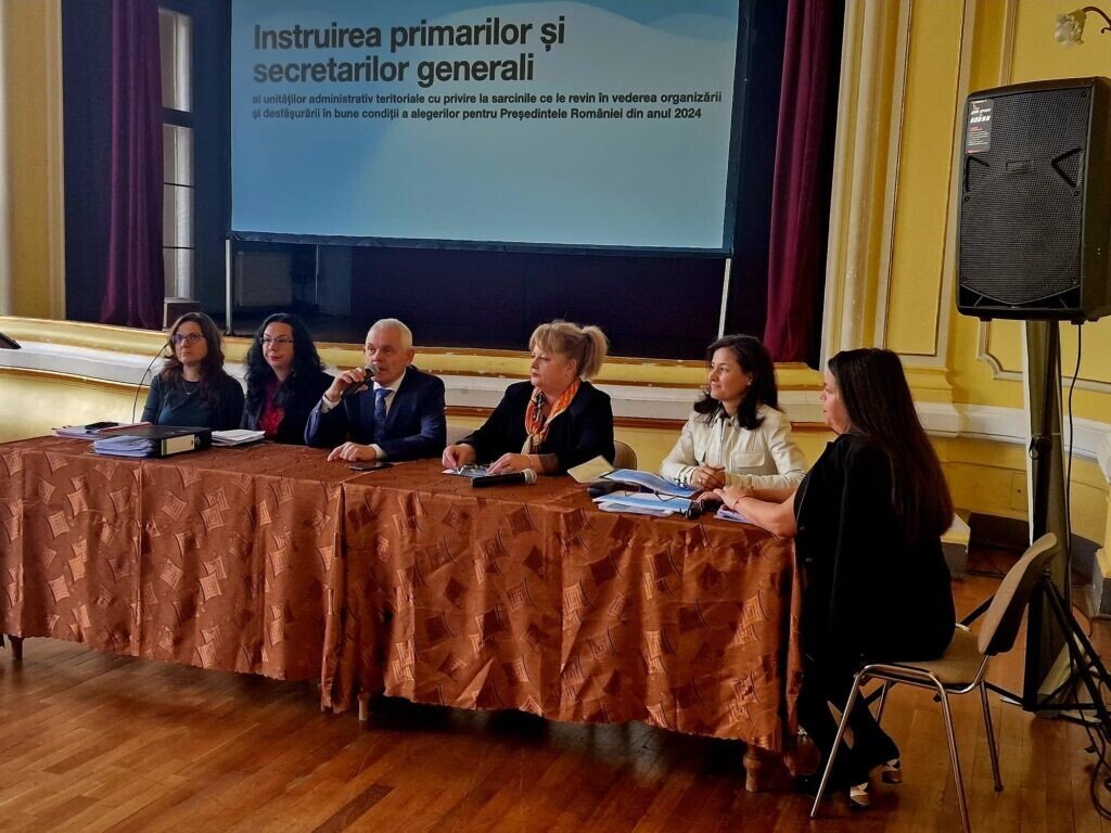 „În conformitate cu prevederile art. 8 alin. (2) din H.G. nr. 1063/28.08.2024 privind stabilirea măsurilor pentru buna organizare și desfășurare a alegerilor pentru Președintele României din anul 2024, coroborate cu cele ale art. 8 alin. (2) din H.G. nr. 1036/21.08.2024 privind stabilirea măsurilor tehnice necesare bunei organizări și desfășurări a alegerilor pentru Senat și Camera Deputaților din anul 2024 astăzi 9 octombrie a.c. a avut loc, sub conducerea Prefectului Județului Sibiu – domnul Mircea Dorin Crețu, Ședința pentru instruirea primarilor și secretarilor generali ai unităților administrativ teritoriale de pe raza județului Sibiu, cu privire la sarcinile ce le revin acestora în vederea organizării și desfășurării în bune condiții a alegerilor prezidențiale și parlamentare 2024.