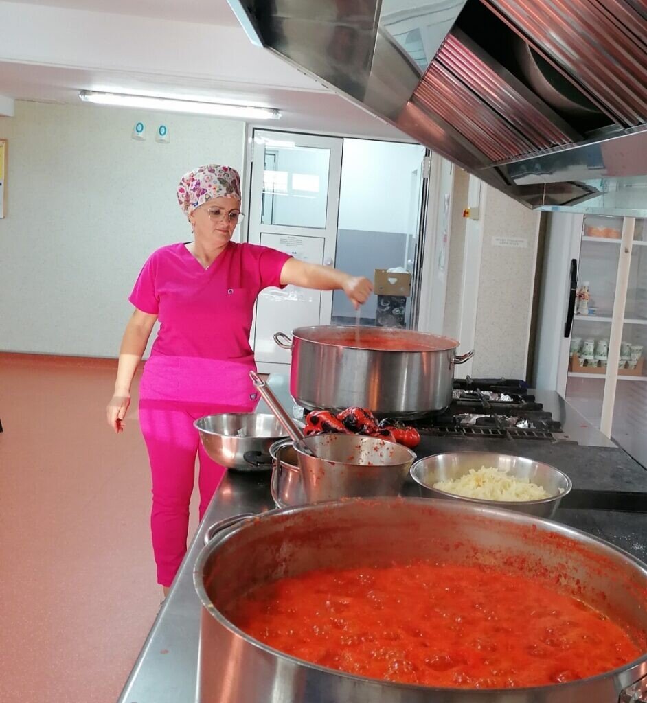„Pentru bolnavii cu patologii cronice, precum tuberculoza, hrana este foarte importantă, pentru că tuberculoza este o boală consumptivă, iar prin asigurarea unei alimentații de calitate, cu suficiente proteine, organismul dobândește resursele care să asigure vindecarea. Proteinele sunt la baza anticorpilor, a imunității – de aceea este importantă calitatea hranei, iar prin faptul că preparăm mâncarea în spital, gătită proaspăt, le asigurăm bolnavilor nutrienți de calitate. Legumele conservate determină păstrarea vitaminelor în foarte mare parte, asigurându-se o hrană cu oligoelementele necesare. Acest lucru aduce un plus de valoare calității actului medical și îngrijirii pacienților”, declară Dr. Lavinia Danciu, Director Medical Spitalul de Pneumoftiziologie Sibiu.