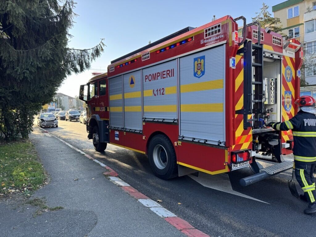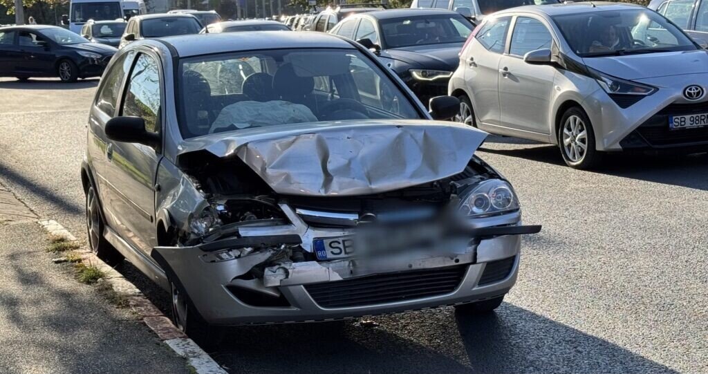 Două mașini au intrat într-o coliziune față-spate, pe strada Rahovei din municipiul Sibiu, în apropierea intersecției Rahovei – Bulevardul Vasile Milea – strada Semaforului