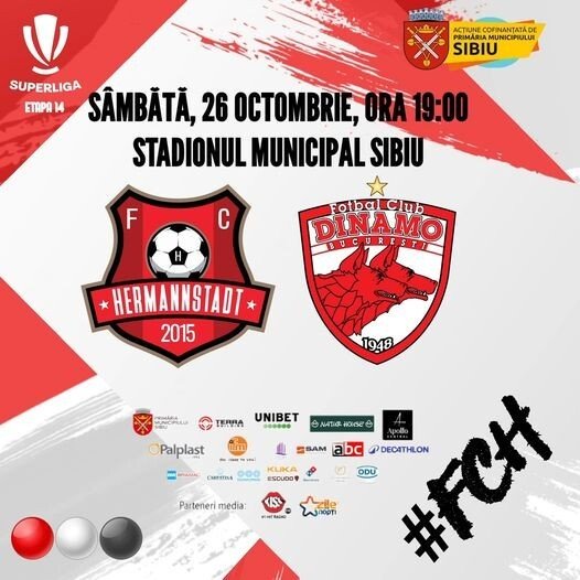 Partida FC Hermannstadt – Dinamo se joacă sâmbătă, de la ora 19.00, pe stadionul Municipal.
