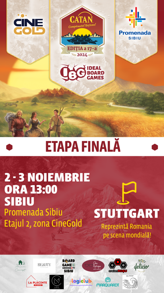 Pe 2-3 noiembrie, Sibiul va deveni centrul jucătorilor de board games din România, deoarece va găzdui Etapa Națională a Campionatului de Catan 2024. Dedicat pasionaților de acest joc strategic, evenimentul va avea loc la Promenada Mall și va reuni cei mai buni jucători din întreaga țară, provenind din 15 orașe și 21 de etape locale.