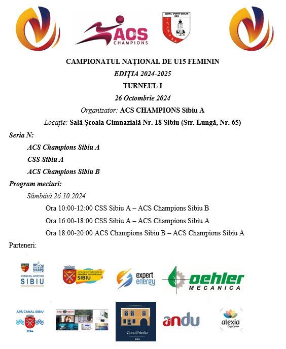 Turneul este găzduit la Sala Școlii Gimnaziale Nr. 18 din Sibiu și promite meciuri de intensitate maximă, în care echipele sibiene vor lupta pentru supremația locală. Favorita turneului, ACS Champions Sibiu A, vine după performanțe de excepție în sezonul trecut, când a obținut locul 4 la nivel național. De asemenea, echipa are în componență două jucătoare remarcabile, componente ale lotului național U16, Alessia Corpodean și Adela Vasilescu, care promit să aducă un plus de valoare și să facă diferența pe teren.