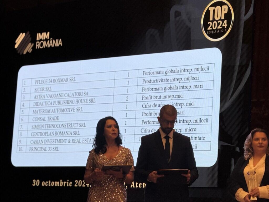 Casian Investment & Real Estate a fost recunoscută cu locul 1 pentru performanță globală la Gala „Topul Național al Firmelor Private din România 2024”, organizată de Consiliul Național al IMM-urilor din România (CNIPMMR).