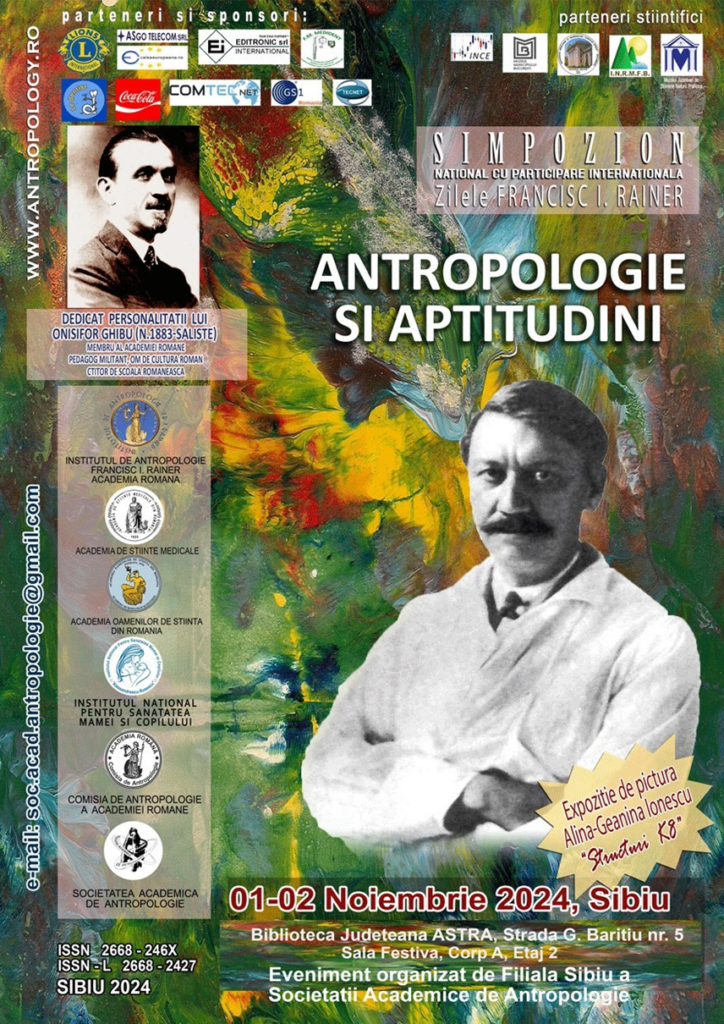 În perioada 1-2 noiembrie 2024, la Biblioteca Județeană ASTRA din Sibiu, va avea loc Simpozionul Național „Zilele Francisc I. Rainer”, ediția de toamnă. Evenimentul va explora tema „Antropologie și Aptitudini: aspecte socio-culturale și bio-medicale”, dedicându-se unei analize ample a individului și societății românești. Conferința, organizată de Filiala Sibiu a Societății Academice de Antropologie, pune accent pe perspective socio-culturale, de sănătate și ecologie, inspirate de personalitatea lui Onisifor Ghibu, important pedagog și om de cultură.