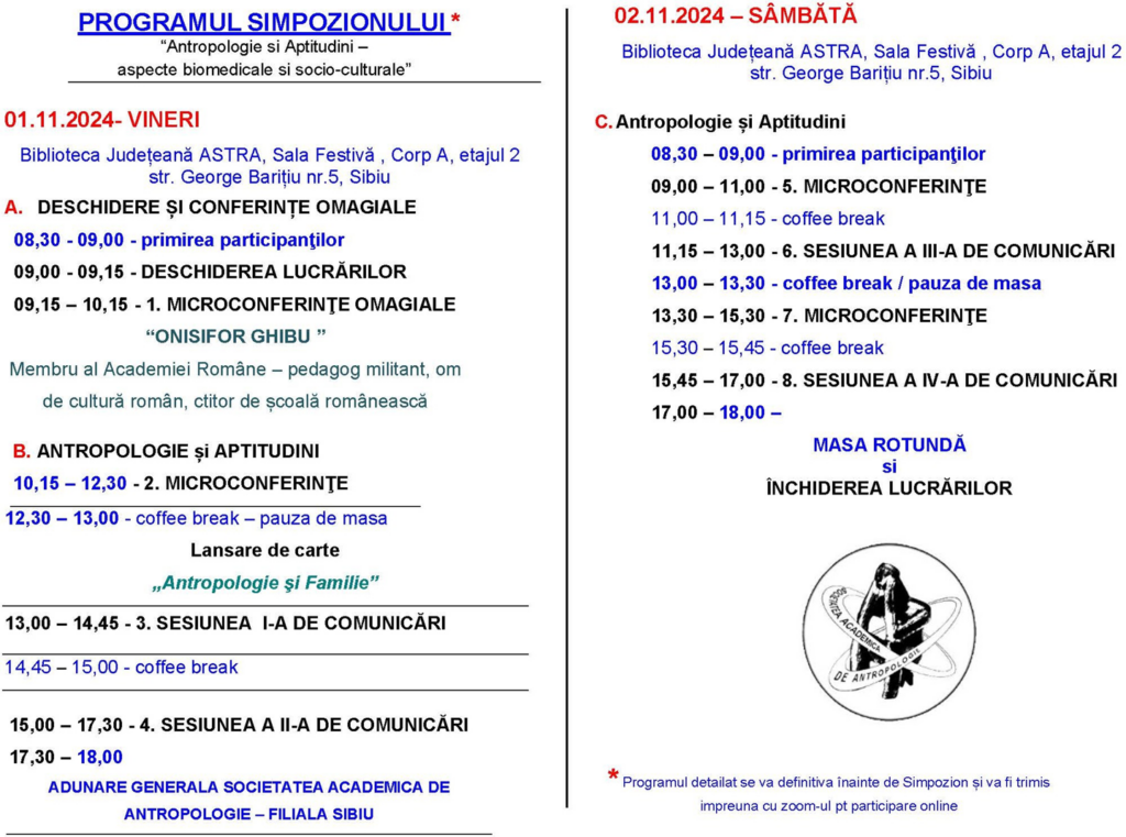 Eveniment organizat de Filiala Sibiu a Societății Academice de Antropologie.