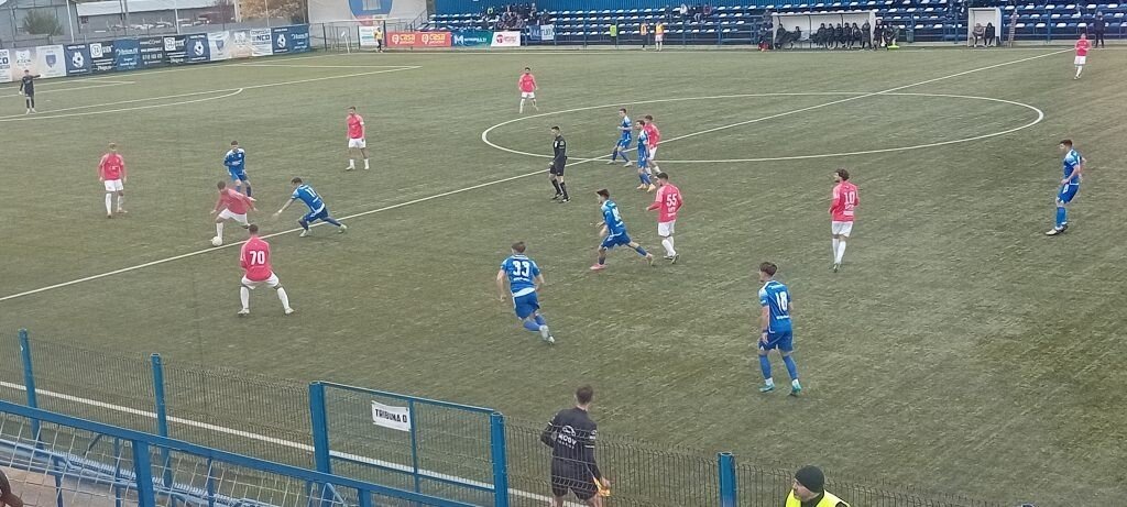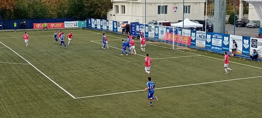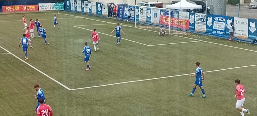 Partida a început alert, iar gazdele au deschis scorul în minutul 6. Valentin Robu a marcat din interiorul careului după o greșeală a defensivei sibiene.