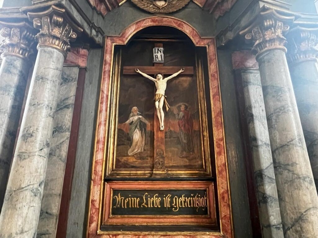 Urmează un tur prin amvonul acoperit cu lemn meșteșugit sculptat, pe la altarul impunător și orga montată la 1942. Totul este încremenit în timp, învăluit de o tăcere ce parcă așteaptă să fie alungată de rugăciunile credincioșilor sau de pașii turiștilor.