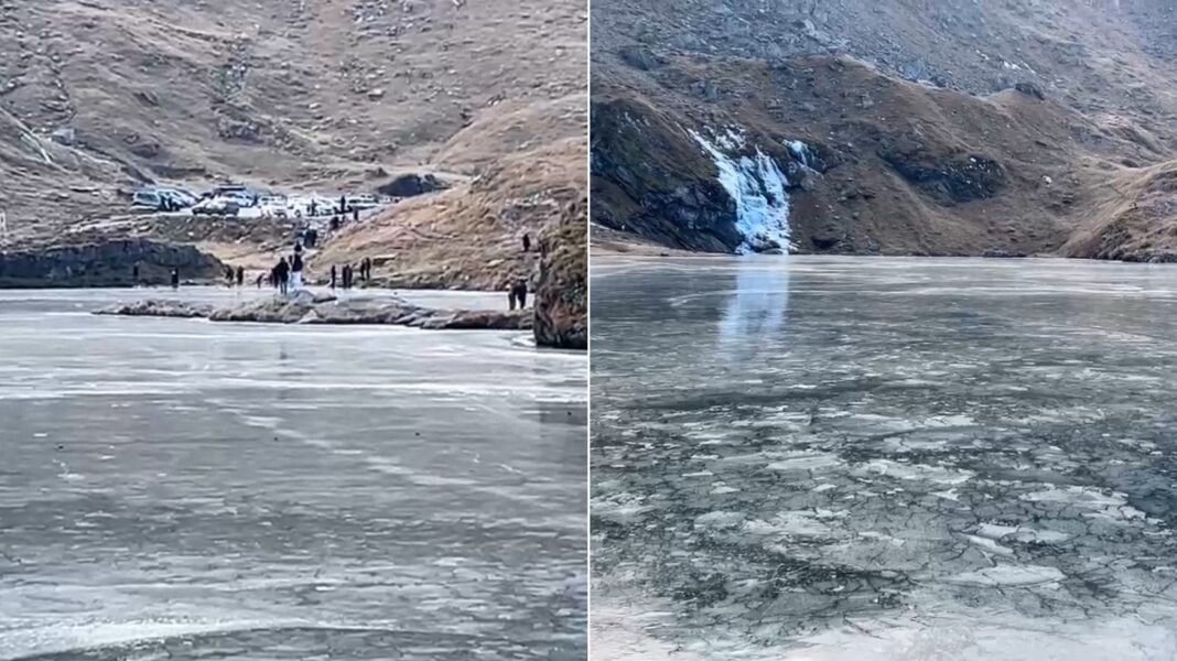 A înghețat Lacul Bâlea! Turiștii își fac selfie pe gheață