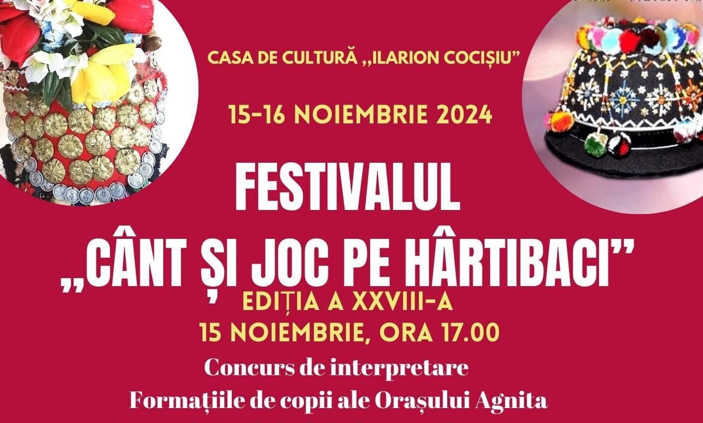 Orașul Agnita va găzdui, în intervalul 15-16 noiembrie 2024, ediția a XXVIII-a a Festivalului „Cânt și Joc pe Hârtibaci”.