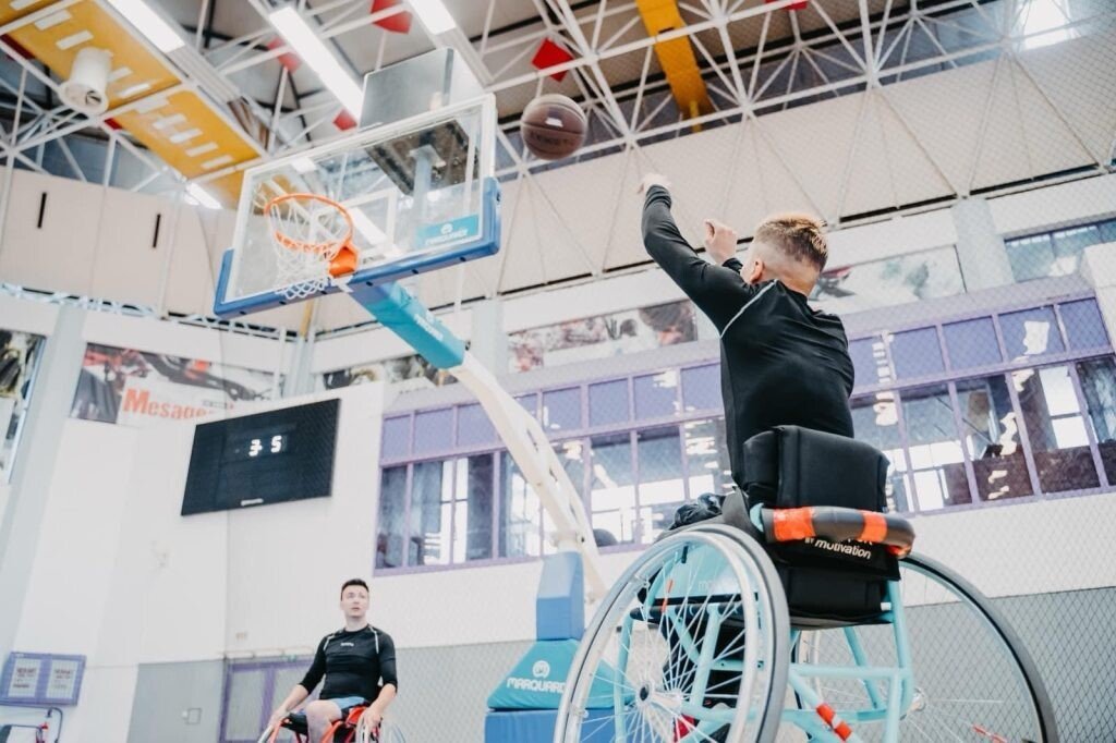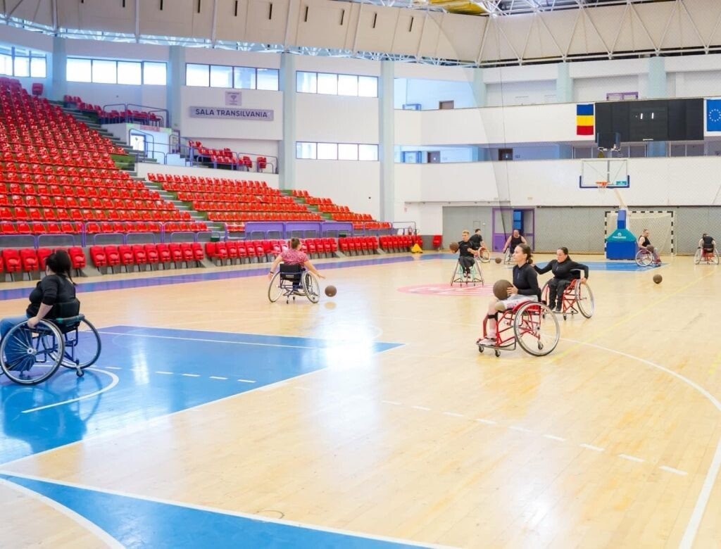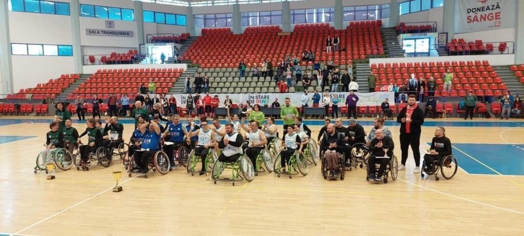 Este forfotă mare în Sala Transilvania Sibiu, sunetul unei mingi de baschet, ce lovește cu sete podeaua, suprapunându-se cu cele scoase de cauciucurile unor scaune rulante ce mișună de colo-colo. Este ziua în care se antrenează echipa celor care joacă baschet exclusiv cu mâinile, salturile spre coș fiind înlocuite cu sprintul neașteptat de vioi al scaunelor rulante.