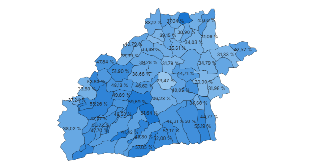 În municipiul Sibiu prezența la vot a fost 59,68%, iar la Mediaș 39,15%. Cea mai mare prezență la vot s-a înregistrat în comuna Alma cu 62,34%, urmată de Șelimbăr cu 61,64%, urmate de municipiul Sibiu.