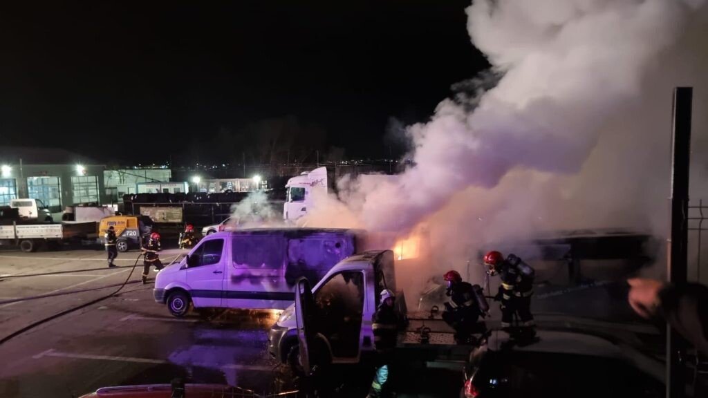ACTUALIZARE: 21.00: Focul a fost stins. În urma înlăturării efectelor negative și a cercetării făcute de pompieri la fața locului cauza probabilă de izbucnire a incendiului a fost un scurtcircuit produs la o auto platformă, acesta propagându-se la alte șase autovehicule parcate în apropierea acesteia. Din fericire nu au fost înregistrate victime.