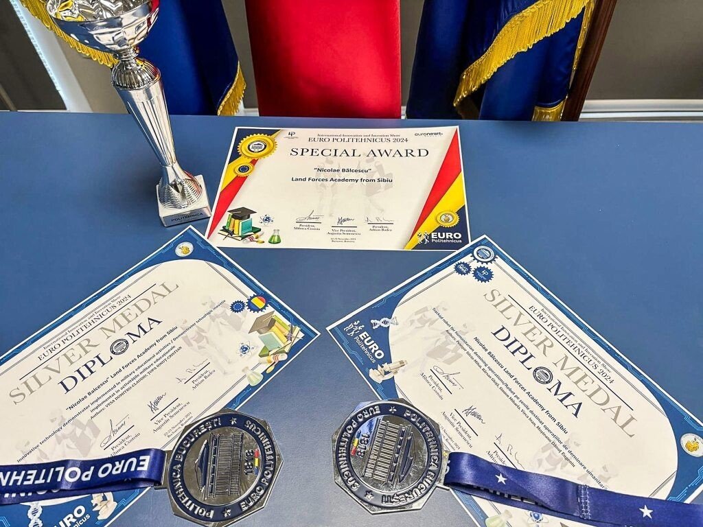 Lt.col.drd. Claudiu Vesa și ing.drd. Ionuț-Cristian Țopa au reprezentat Academia Forțelor Terestre „Nicolae Bălcescu” din Sibiu, în perioada 22–24 noiembrie, la prima ediție a Salonului Internațional al Inovării și Invenției Euro Politehnicus 2024.