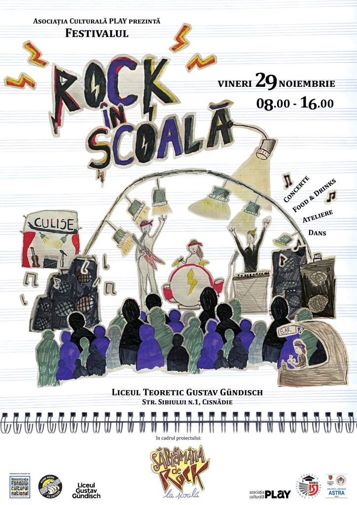 Vineri, 29 noiembrie, între orele 08:00 și 16:00, Liceul Teoretic „Gustav Gündisch” din Cisnădie devine gazda „Festivalului Rock în Școală” – primul festival dedicat culturii rock derulat într-o școală din România.