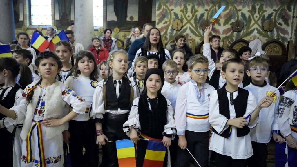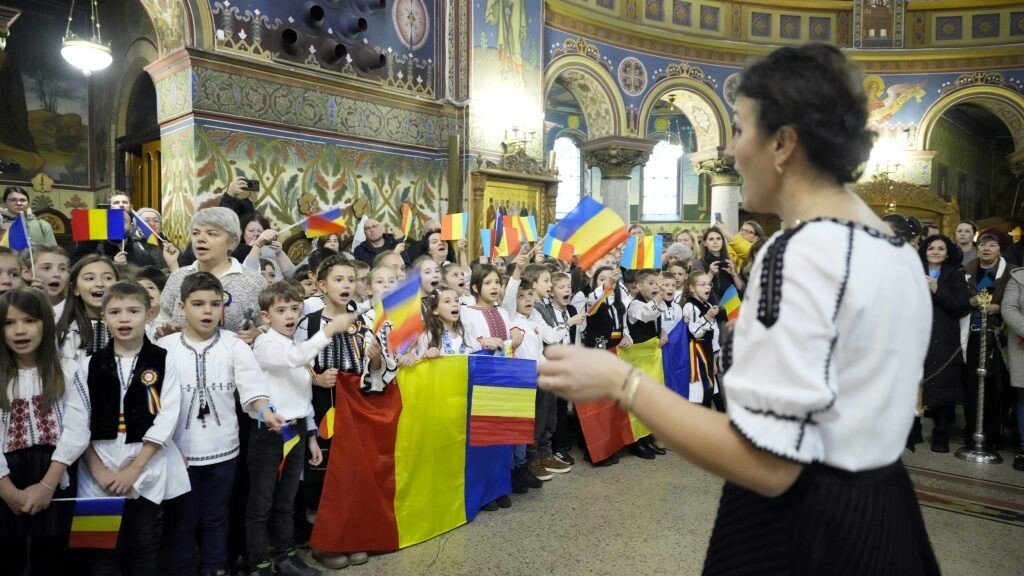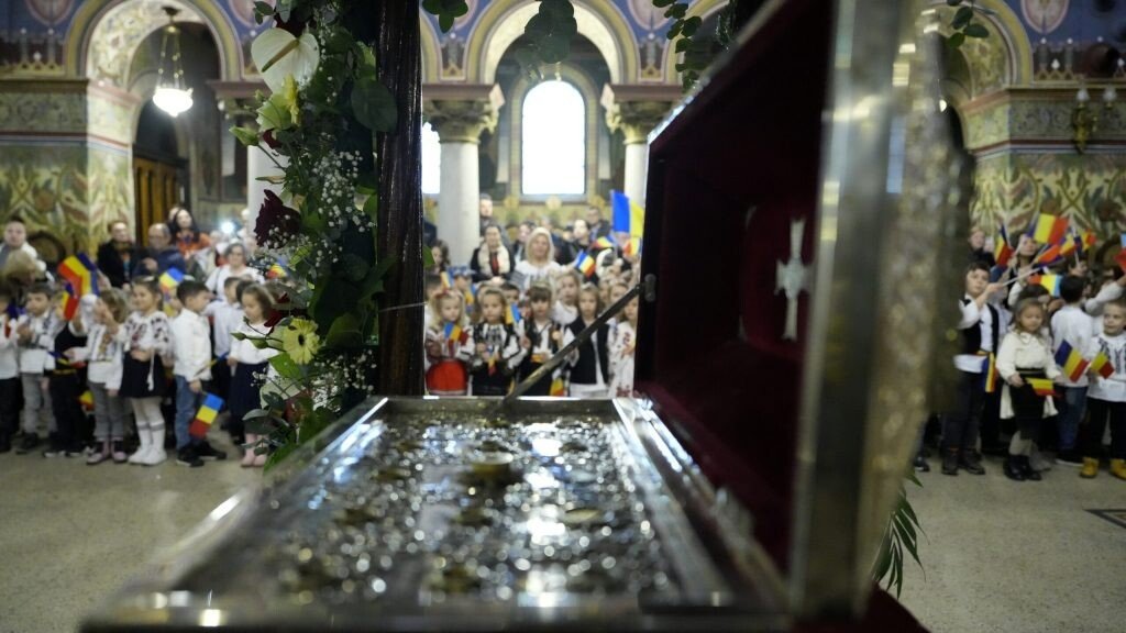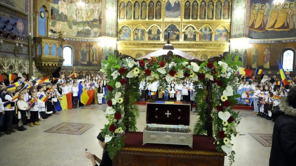 Cei mici îmbrăcați în portul național tradițional au înconjurat baldachinul unde se află moaștele Sfântului Ierarh Andrei Șaguna, Mitropolitul Transilvaniei, și au adus bucurie prin cântecele și colindele ce au răsunat în lăcașul de cult, al cărui proiect a fost realizat de către Sfântul Andrei Șaguna.