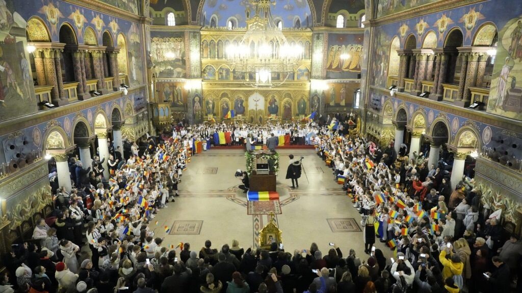 Catedrala Mitropolitană din Sibiu a răsunat astăzi de vocile a sute de copiii de la Colegiul National „Octavian Goga” din Sibiu care au venit să aducă prinos de cinstire Sf. Ierarh Andrei Șaguna și au marcat și apropierea Zilei Naționale a României. Un cuvânt de întâmpinare a fost rostit de Pr. Prof. Vasile Mihoc, vicar administrativ al Arhiepiscopiei Sibiului, care a transmis binecuvântarea Înaltpreasfințitului Părinte Laurențiu, Arhiepiscopul Sibiului și Mitropolitul Ardealului.