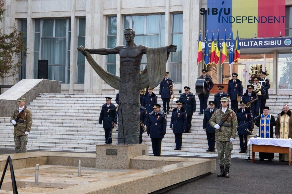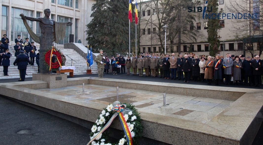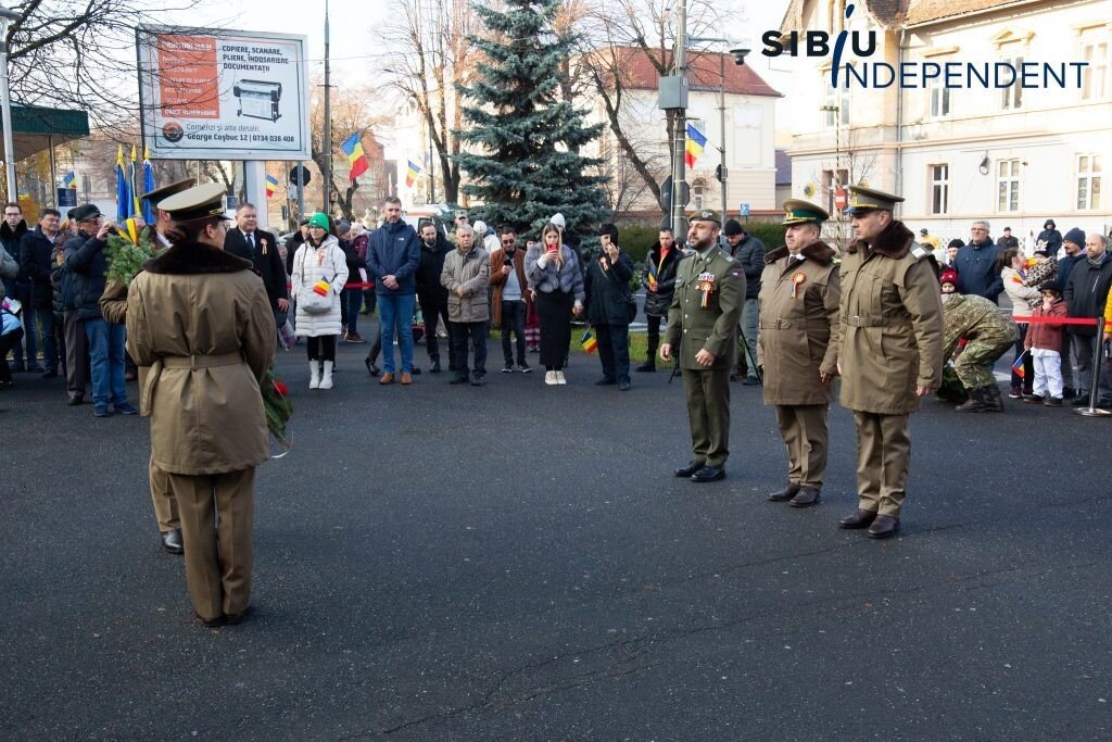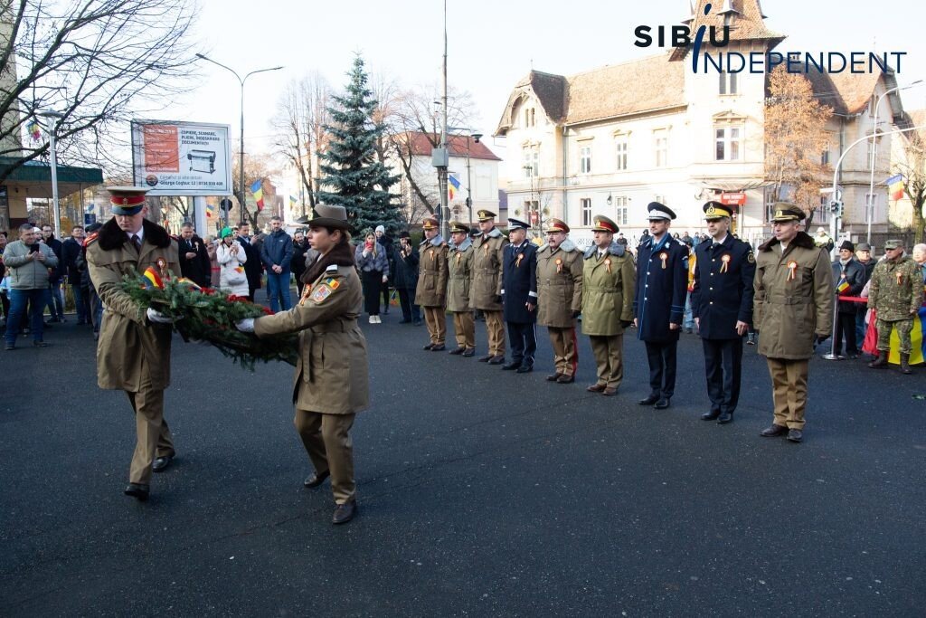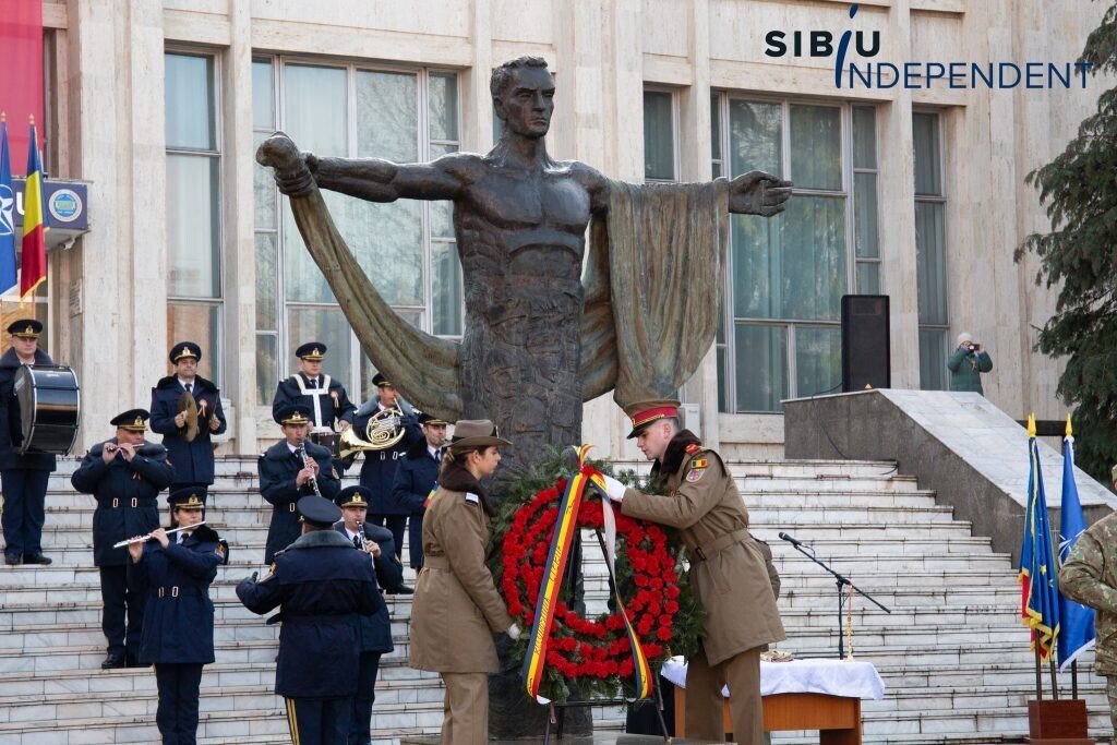 Ca în fiecare an, la Sibiu, de Ziua Națională a României, autoritățile sibiene au organizat astăzi, începând cu ora 10:00, un ceremonial de depunere de coroane și jerbe de flori la „Monumentul ostașului din toate timpurile” din fața Cercului Militar Sibiu.