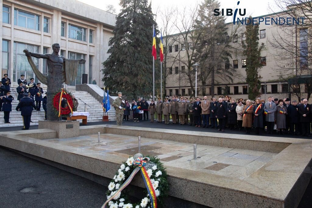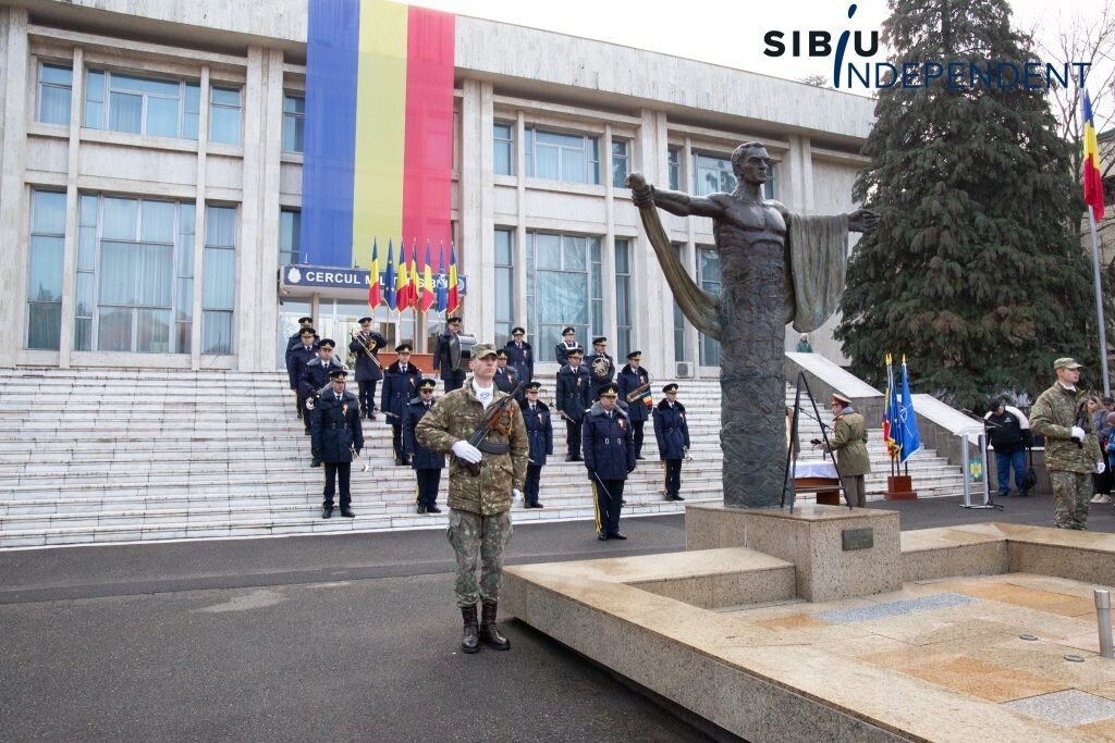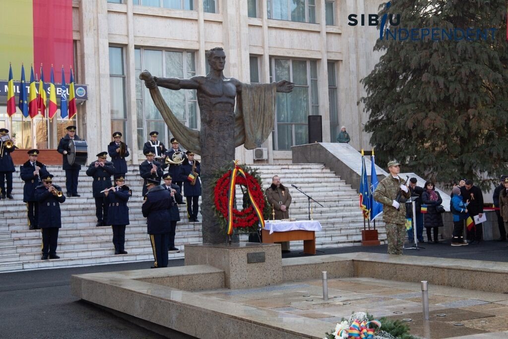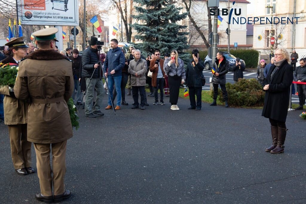 Ca în fiecare an, la Sibiu, de Ziua Națională a României, autoritățile sibiene au organizat astăzi, începând cu ora 10:00, un ceremonial de depunere de coroane și jerbe de flori la „Monumentul ostașului din toate timpurile” din fața Cercului Militar Sibiu.