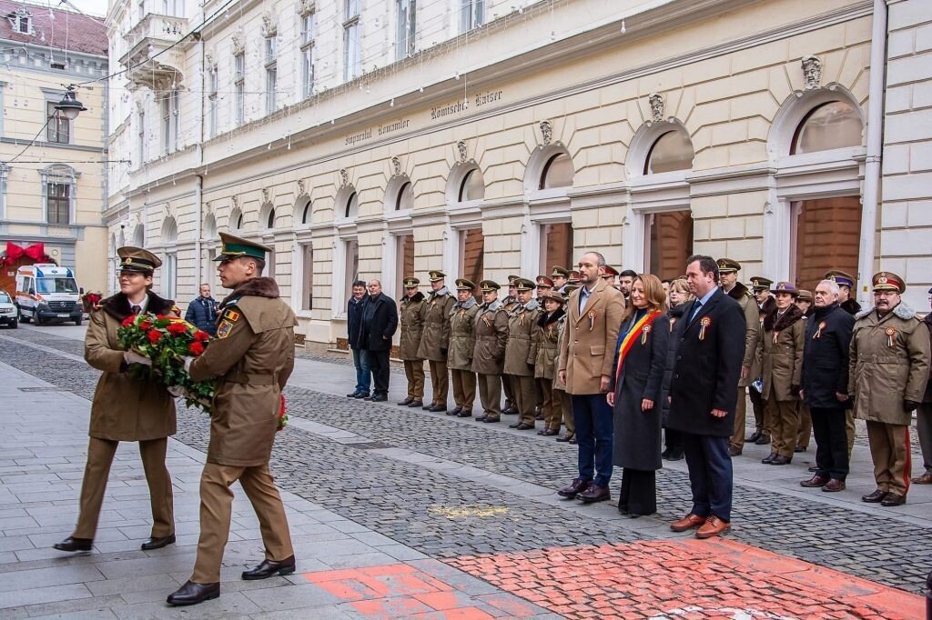 Cu prilejul împlinirii a 106 ani de la înfăptuirea Marii Uniri de la Alba Iulia, la data de 1 decembrie 1918, Academia Forţelor Terestre „Nicolae Bălcescu” din Sibiu și structurile militare din garnizoana Sibiu au participat astăzi la ceremoniile militare de depuneri de coroane şi jerbe de flori, la Consiliul Dirigent, respectiv la „Monumentul ostaşului din toate timpurile”, amplasat în faţa Cercului Militar, activități organizate de Instituția Prefectului – Județul Sibiu, Consiliul Județean Sibiu, Primăria Municipiului Sibiu și autoritățile publice locale în colaborare cu Mitropolia Ardealului, Universitatea „Lucian Blagaˮ din Sibiu şi celelalte structuri din cadrul Sistemului național de apărare, ordine publică și siguranță națională din judeţul Sibiu.
