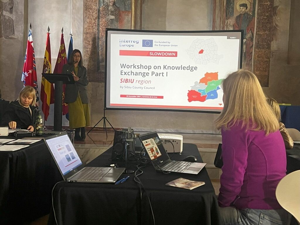 Proiectul „SLOWDOWN – Promovarea practicării unui turism durabil, pentru dezvoltarea economică responsabilă la nivel local și regional”, este derulat de către Consiliul Județean Sibiu cu suportul financiar al Uniunii Europene, prin Interreg Europe, perioada de implementare fiind cuprinsă între aprilie 2024 – iunie 2028.