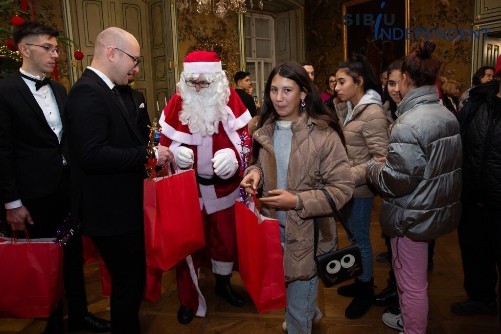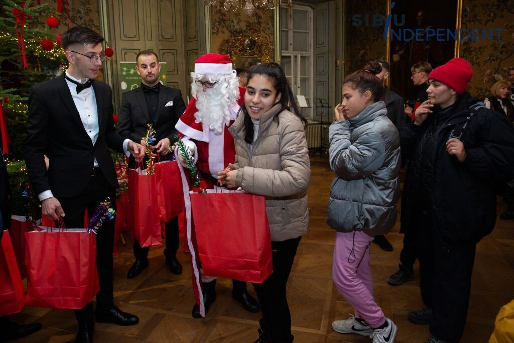 Arta, solidaritatea și bucuria au fost la ele acasă! 4 tablouri realizate de elevii Liceului de Artă din Sibiu au fost scoase la licitație, iar colindele interpretate de corul liceului au încântat pe toți cei prezenți. Apariția lui Moș Crăciun i-a bucurat nespus pe cei 160 de copii prezenți, iar zâmbetele lor au luminat întreaga seară. Acesta le-au dăruit tuturor cadouri.