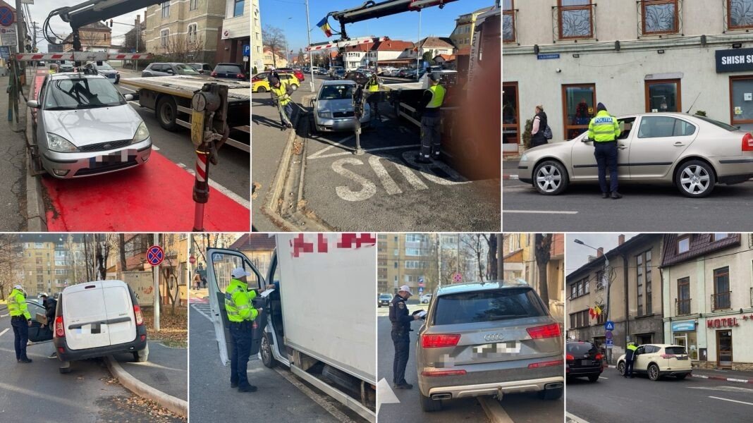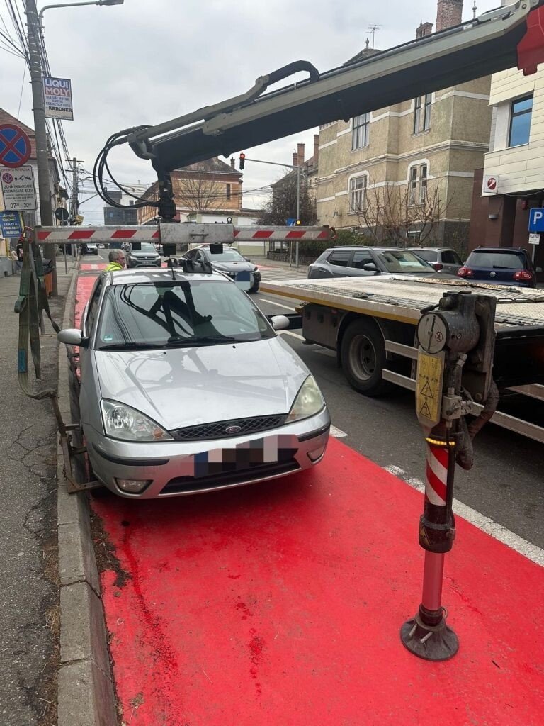 Astfel, agenții au ridicat mașinile care erau parcate la o distanță mai mică de 25 de metri față de colțul intersecției.