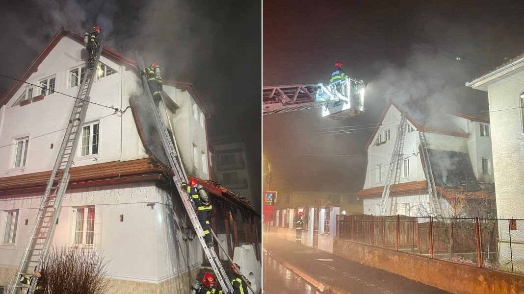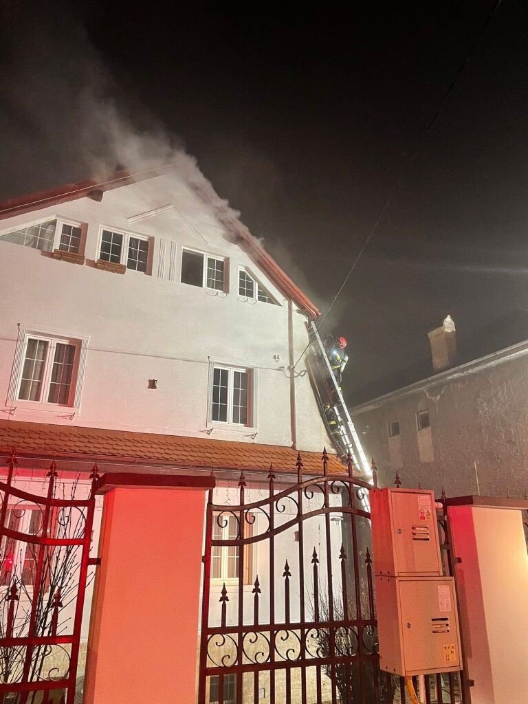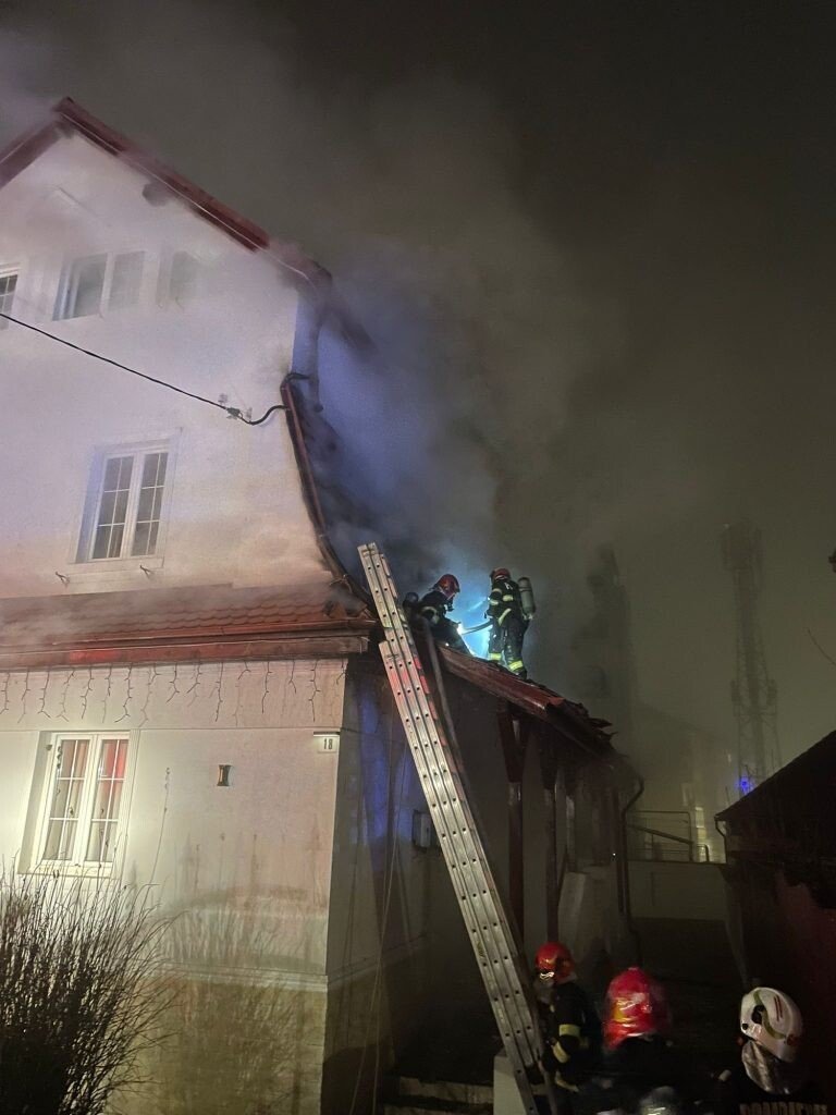 Pompierii sibieni au intervenit azi-noapte pe strada Cristian din municipiul Sibiu pentru stingerea unui incendiu care se manifestă cu ardere mocnită la acoperișul unei case.