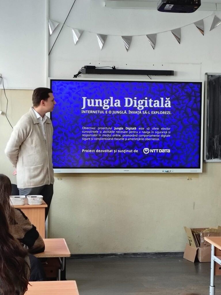 Cu ajutorul unui program dezvoltat de NTT DATA Romania denumit “Jungla Digitală”, care va fi aplicat în parteneriat cu poliţişti din cadrul IPJ Sibiu, elevii învață cum să se ferească de pericolele online.