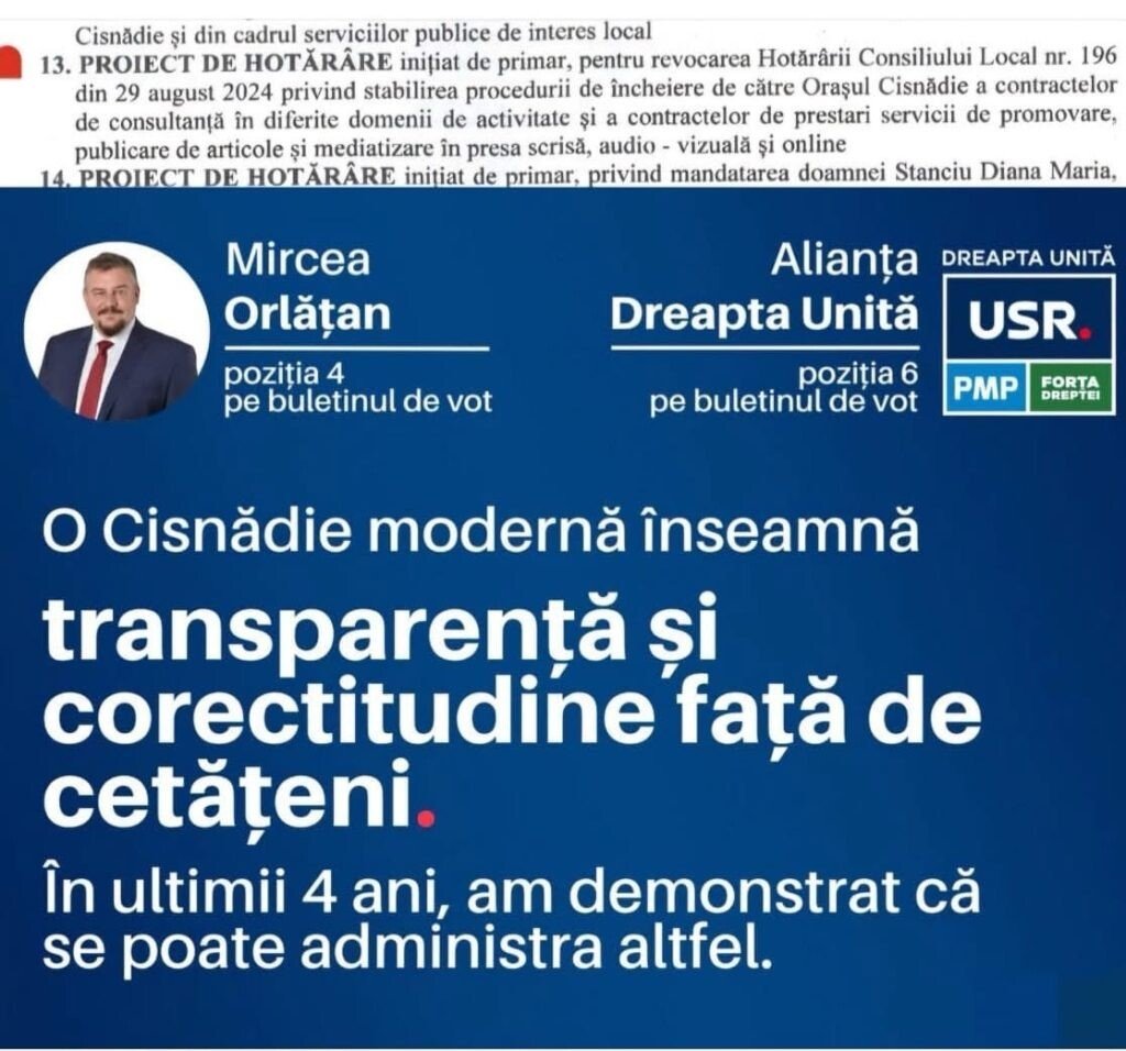 Bogdan Gușe, consilier local AUR în Cisnădie, trage un semnal de alarmă cu privire la proiectul primarului de a revoca HCL nr. 196 din 29 august 2024. Acesta susține că propunerea ar duce la lipsă de transparență și ar lăsa consilierii și cetățenii pe dinafară când vine vorba de informații despre banii publici, serviciile și firmele contractate.