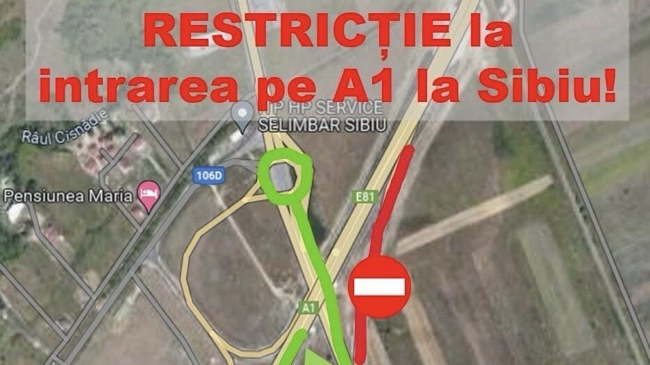 Circulația rutieră va fi închisă pe breteaua de urcare către autostradă din direcția Brașov spre Sebeș și deviată spre sensul giratoriu dinspre Șelimbăr.