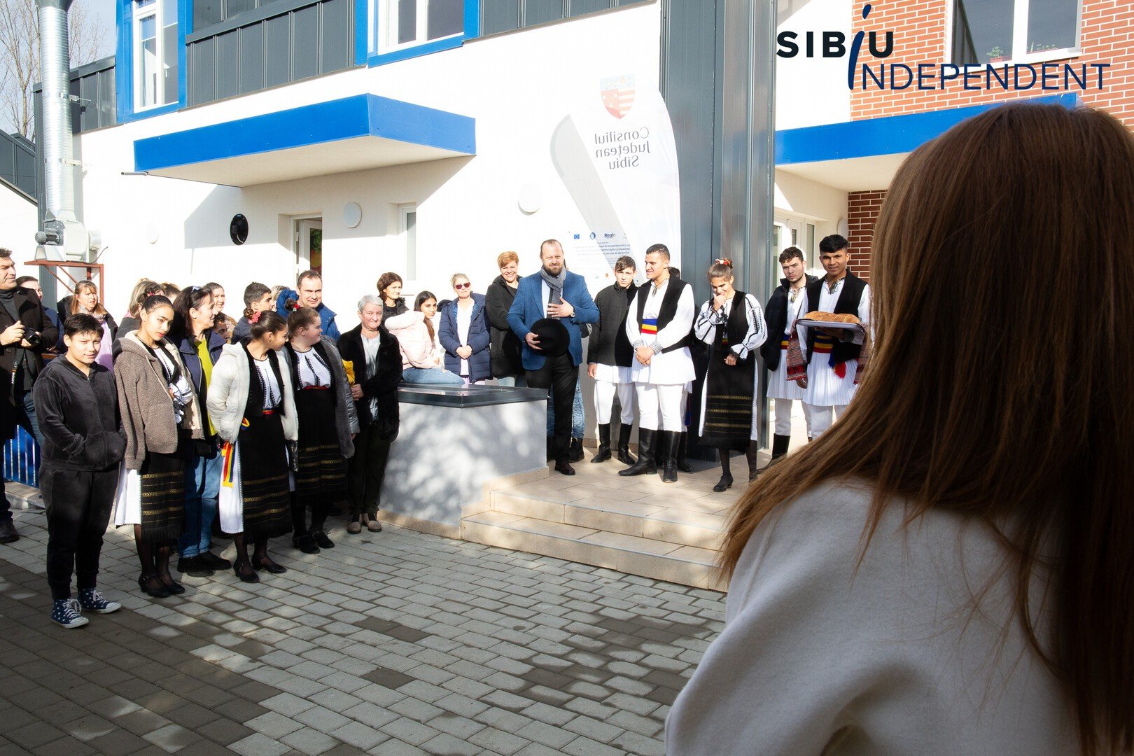 Evenimentul a debutat cu o primire caldă din partea copiilor, care i-au întâmpinat pe invitați îmbrăcați în porturi populare: cu sare și pâine oferite președintei Consiliului Județean Sibiu, Daniela Cîmpean. După o scurtă urare, copiii au cântat colinde, iar Daniela Cîmpean le-a înmânat acestora cheia casei, un simbol al unui nou început.
