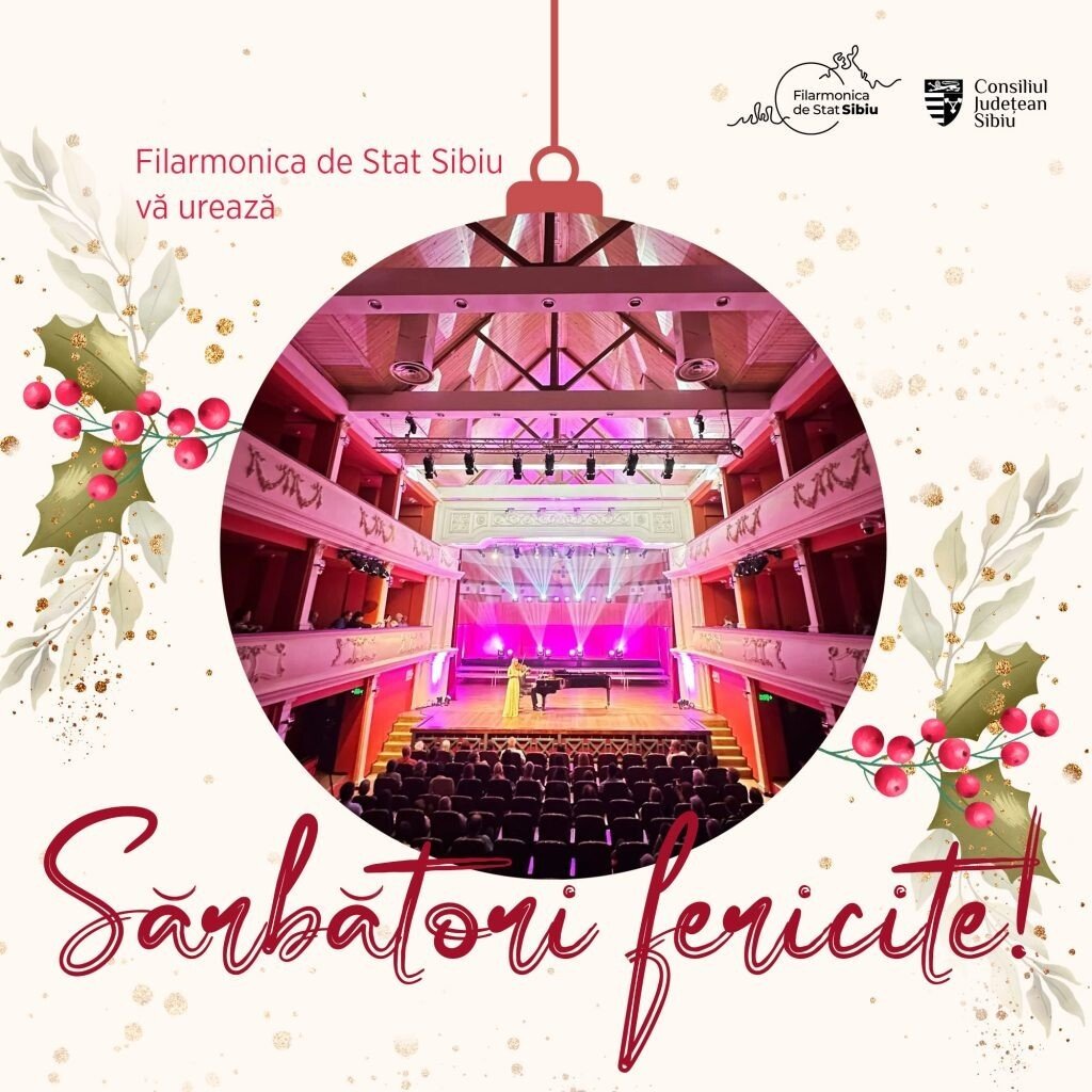 Filarmonica de Stat Sibiu urează tuturor Sărbători Fericite! Cu prilejul Crăciunului și al Noului An, instituția transmite cele mai calde urări de bine, dorindu-le tuturor momente pline de armonie, liniște și bucurii alături de cei dragi.