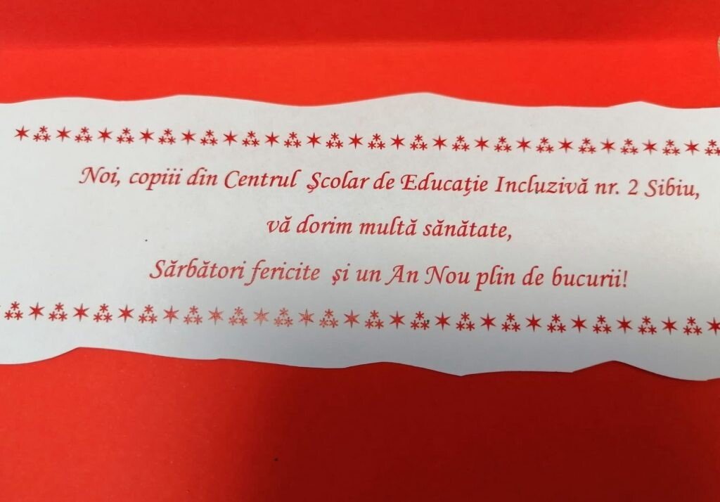 În plus, datorită parteneriatului spitalului cu Centrul Școlar de Educație Incluzivă nr.2, pacienții au primit astăzi felicitări cu mesaje pe tema sărbătorilor de iarnă, confecționate de către elevii acestui centru școlar, cărora le mulțumim foarte mult.