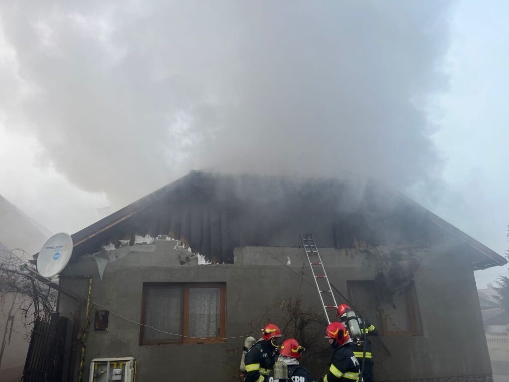 Incendiul se manifestă pe o suprafață de aproximativ 50 de mp. Se lucrează pentru stingerea acestuia. Din fericire nu sunt victime.