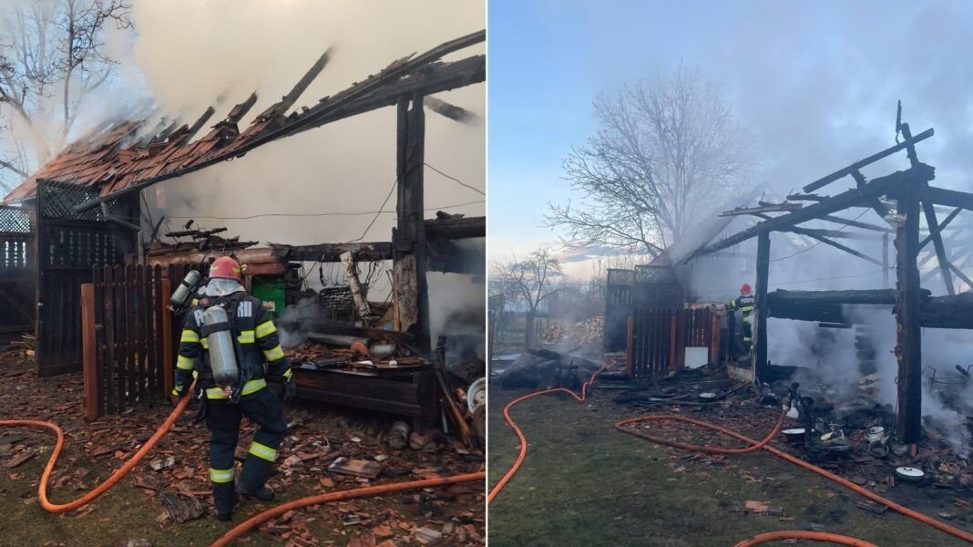 Șură cuprinsă de flăcări la Arpașu de Sus. Totul a pornit de la un scurtcircuit