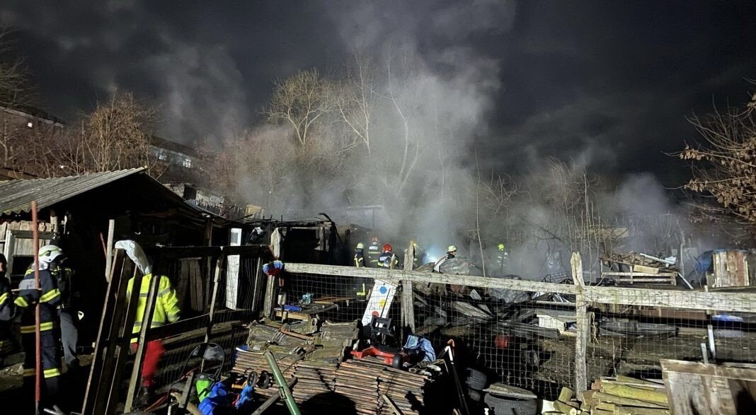 ACTUALIZARE : Pompierii au stins incendiul care a distrus mai multe anexe improvizate care adăposteau animale și diferite bunuri, pe o suprafață totală de aproximativ 200 mp. Pompierii au salvat aproape toate animalele (mai multe păsări, 3 iepuri și 2 cai, mai puțin un ponei).