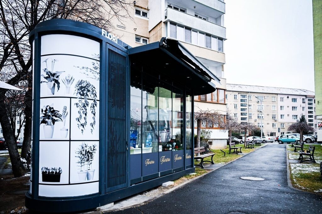Astfel, în primele 3 locații – pe b-dul Mihai Viteazu (unul la intersecția cu str. Rahovei și un al doilea vis-a-vis de Biserică) și pe str. Bihorului (la complex) – au fost amplasate chioșcuri pe structură ușoară, cu o suprafață utilă de 6,7 mp. Aceste spații includ o suprafață pentru comercializare, un mic grup sanitar și un depozit, fiind prevăzute cu conexiune la electricitate și dotate cu aer condiționat. Pereții chioșcurilor sunt din sticlă și, astfel, asigură o bună vizibilitate pentru flori, dar și un aspect plăcut.