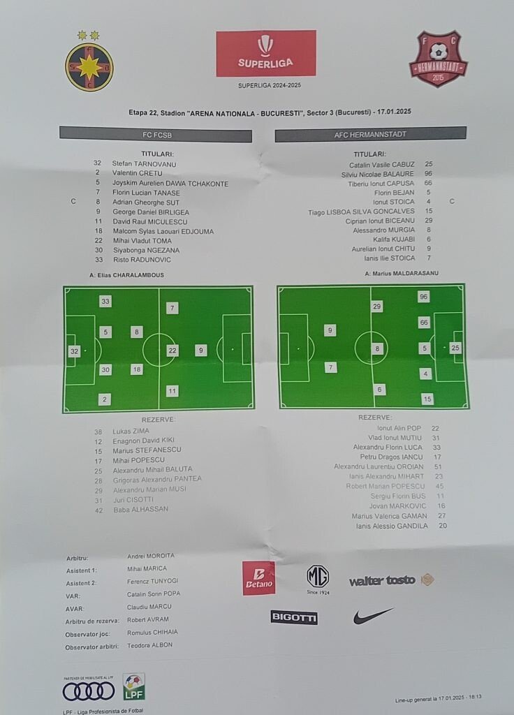 Hermannstadt: Căbuz – Balaure, T. Căpușă, Bejan, Ionuț Stoica, Goncalves – Biceanu, Murgia, Kujabi – Chițu, I. Stoica.