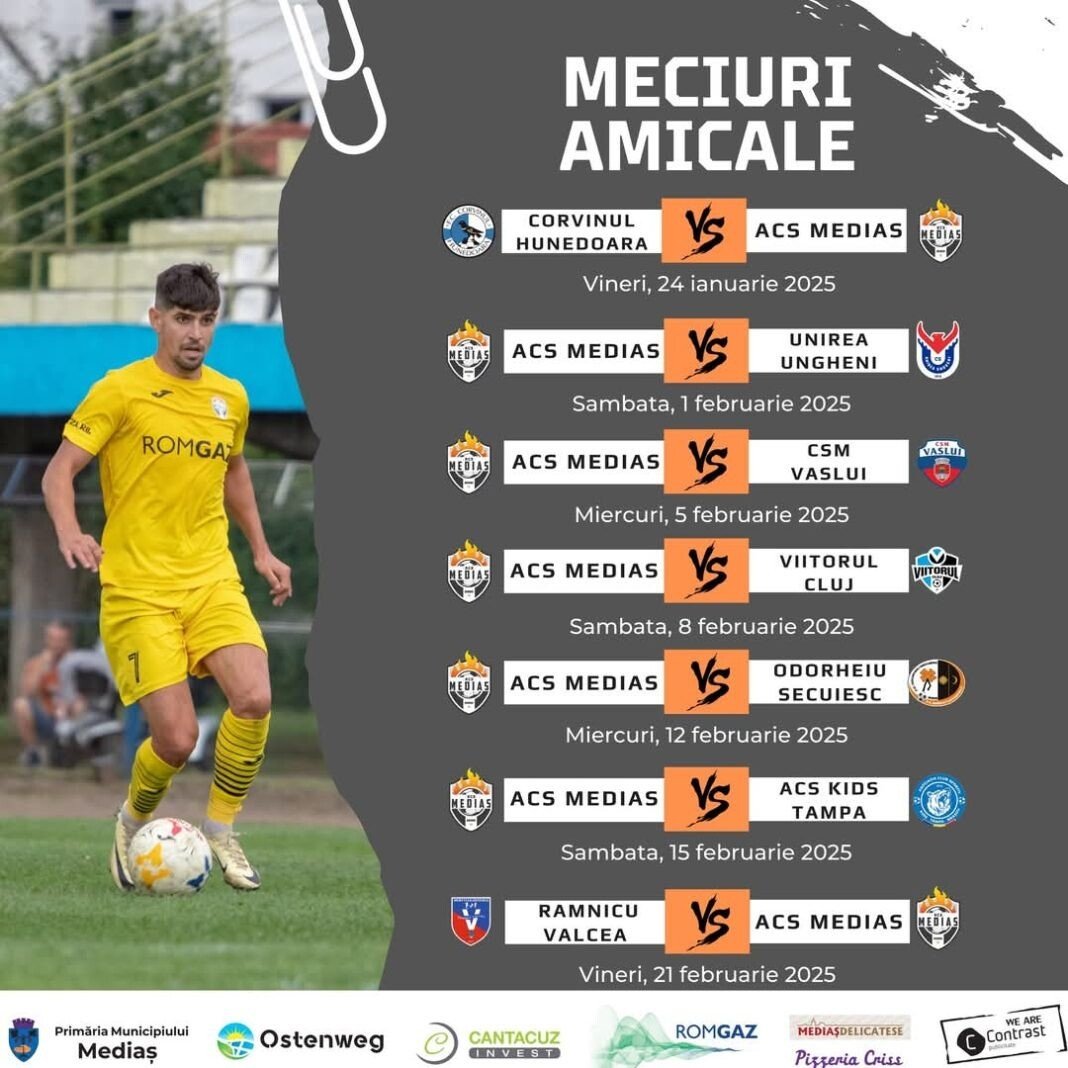 Astfel, pe 24 ianuarie, medieșenii vor juca cu cei de la Corvinul Hunedoara. Vor urma pe 1 și 5 februarie partide cu Unirea Ungheni și CSM Vaslui. Pe 8, 12 și 15 februarie sibienii vor întâlni Viitorul Cluj, Odorheiu Secuiesc și Kids Tampa. Pe 21 februarie, medieșenii vor întâlni CSM Râmnicu Vâlcea.