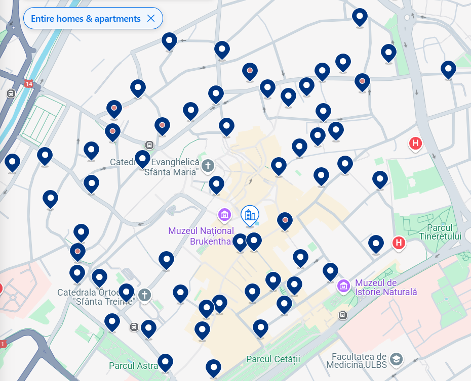Conform siteului Boooking.com zona Centrului Istoric al Sibiului este plină de apartamente disponibile în regim hotelier. (vezi harta mai jos)