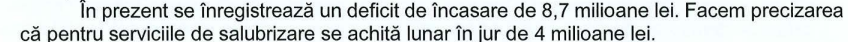 O altă scuză a Primăriei este că are un mare deficit de încasare a taxei, de 8,7 milioane lei. Și mărirea de aproape 41% este cea conformă cu Indicele total al prețurile de Consum stabilit de INS. Altfel spus, media creșterii prețurilor în România la toate produsele. Deși salubritatea este un serviciu.