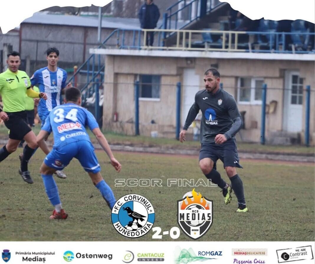 ACS Mediaș a suferit o înfrângere în primul amical al iernii. Pe stadionul CFR Simeria, Corvinul a trecut cu 2-0 de formația sibiană.